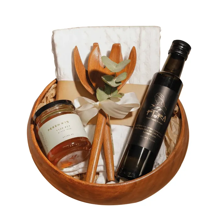 קערת הגשה חגיגית מעץ+ זוג כפות עץ